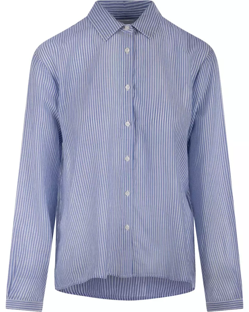 Aja-skjorten er en ren stripete bomullsskjorte designet for daglig eleganse. Med en klassisk silhuett og raffinert stripedefinisjon passer den sammen med både dressbukser og jeans.