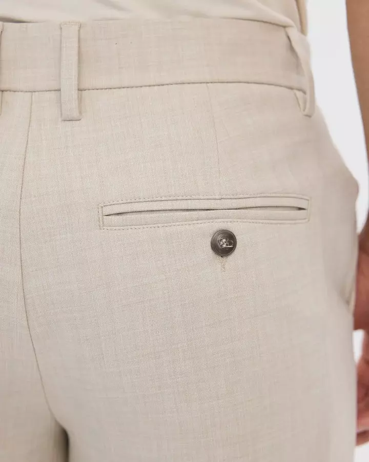 AlvinPL buksene har en rett passform som passer til det meste. Disse er midwaist og vanlig i lengden. De har den klassiske dressbukse-linningen og knapper samt glidelås. Det er en flott sandfarge perfekt til våren og mange anledninger.