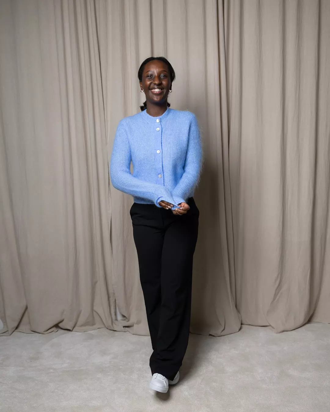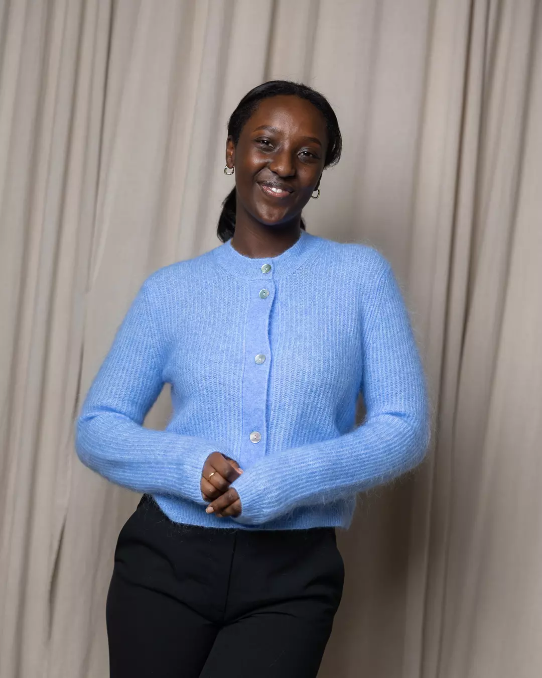 Denne blåfargen er bare helt magisk! Nydelig cardigan i kjent modell fra Samsøe, med fine knapper og lange ermer!