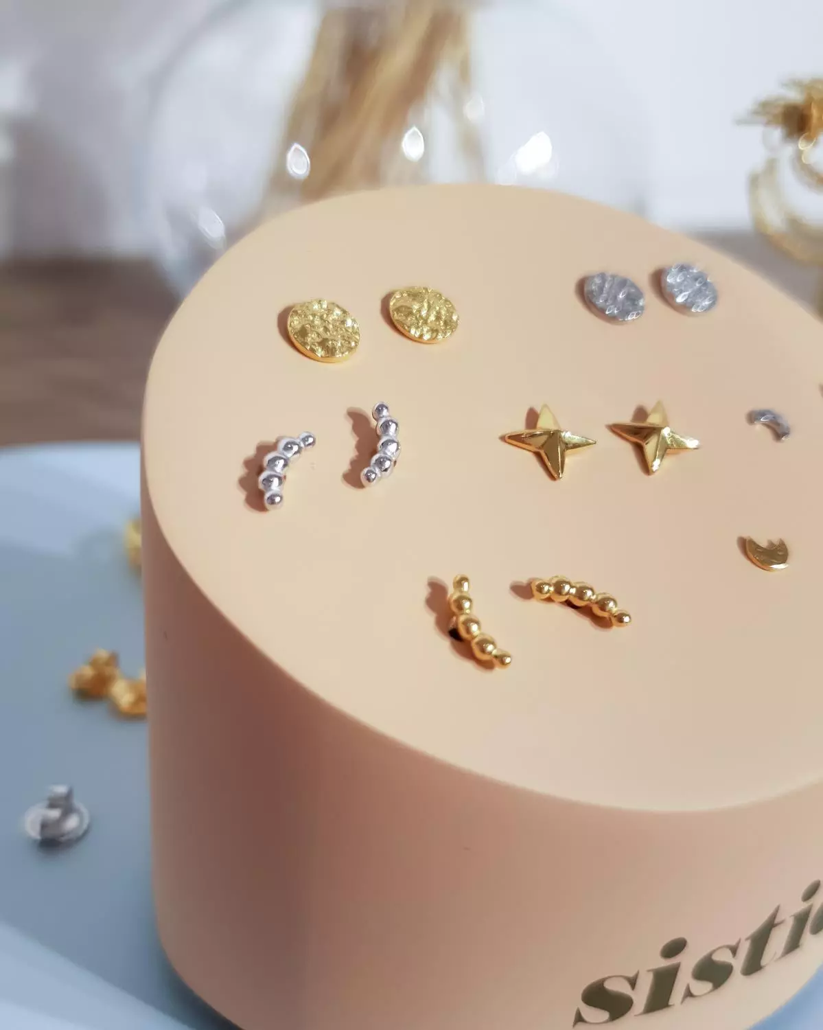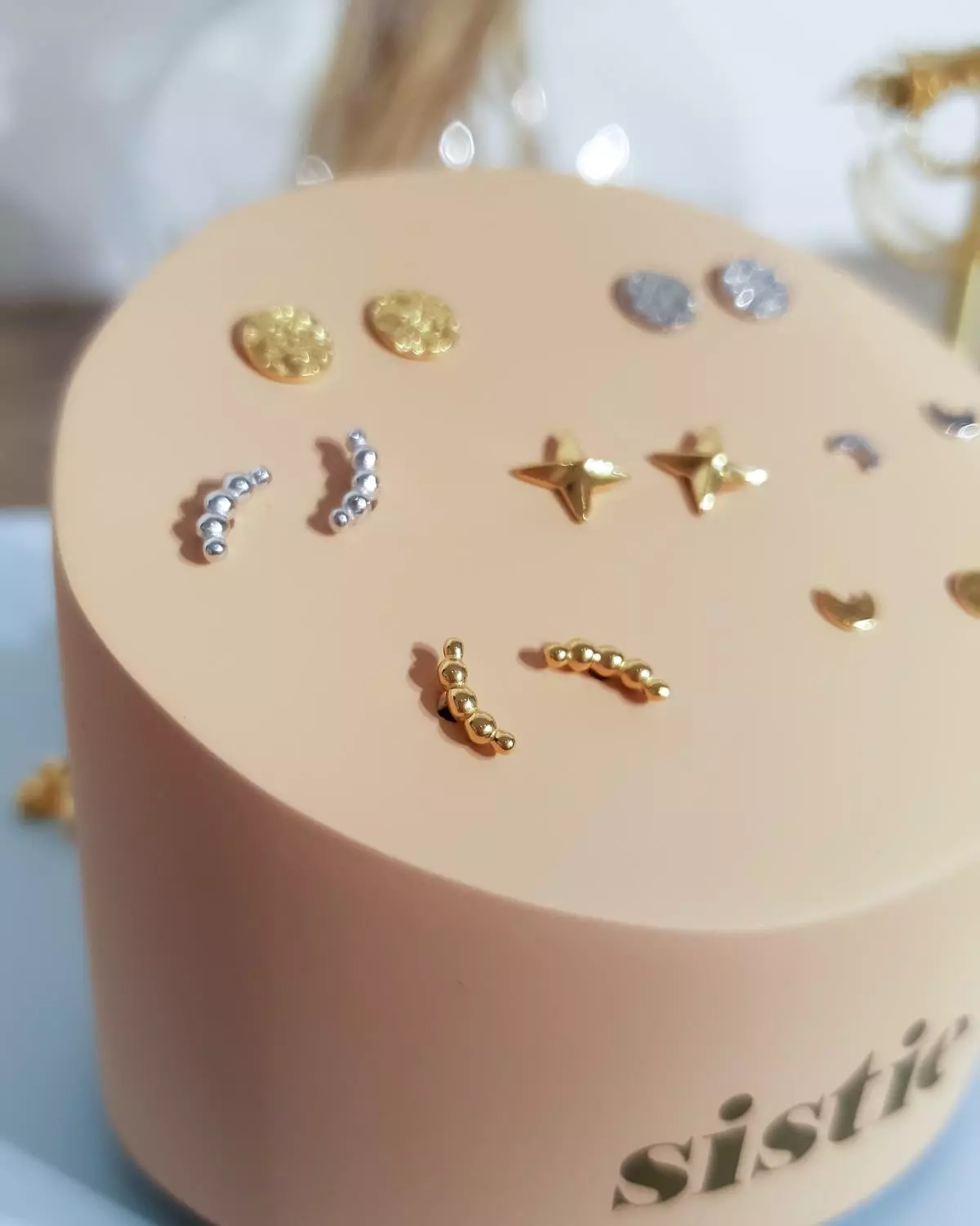 Små Beadie øredobber i forgylt sølv med komposittperler fra det danske merket Sistie. Disse er superfine sammen med flere øredobber i det øverste hullet for eksempel. Kjempelett å bruke og passer til alt!