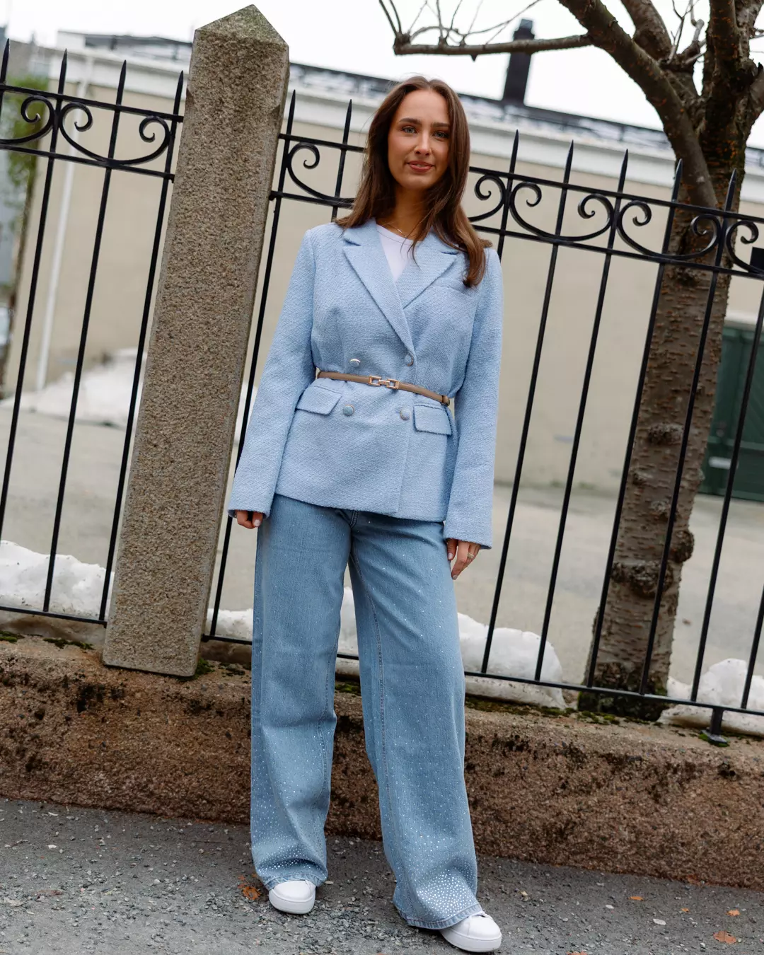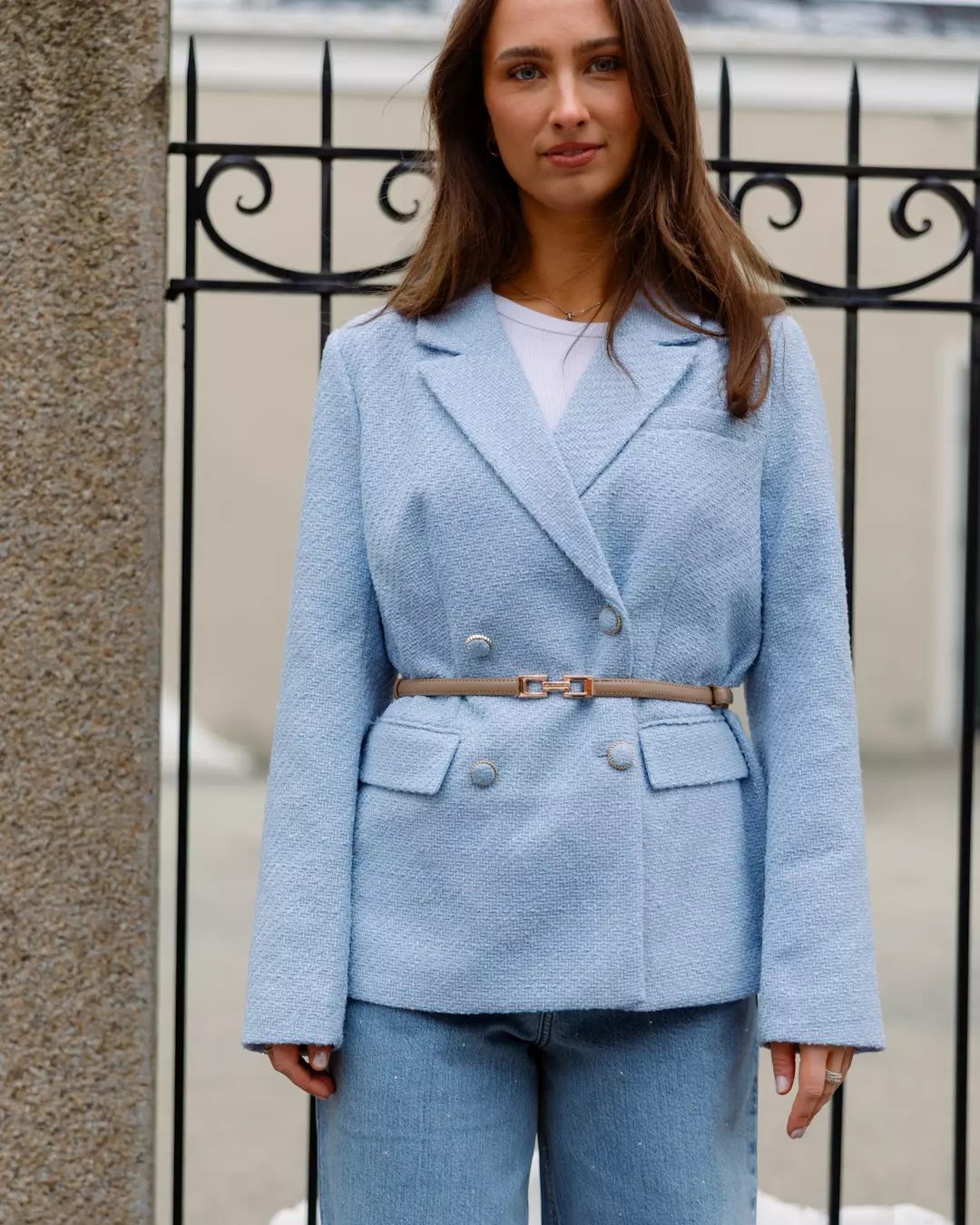 Lekkert smalt midjebelte med gullhempe fra Intex. Pynter opp antrekket! Fint å bruke til løse kjoler man vil fremheve midjen i. Dette er også fint å style over dressjakker, til dressbukser og skjørt.