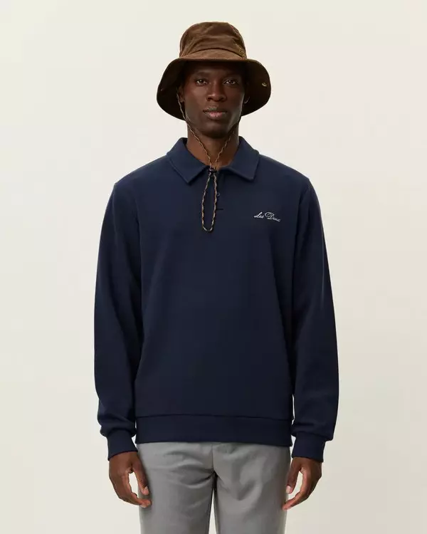 Myk og behagelig pique fra Les Deux! Genseren er laget av piqué-strukturert French Terry, lett børstet på innsiden og avsluttet med knappet krage og broderi på brystet.