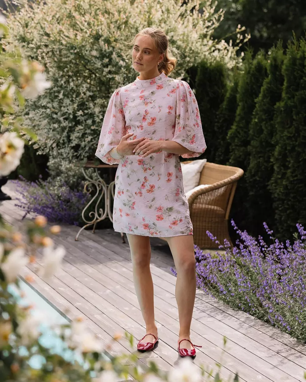 En feminin minikjole med nostalgisk blomsterprint og flatterende passform. Bonnie Dress har en høy hals og vide ermer som gir et sofistikert uttrykk, mens den korte lengden og det lette materialet gjør den perfekt til sommerens anledninger. Passer like godt til hagefest som til hverdags – og styles enkelt opp eller ned etter behov.