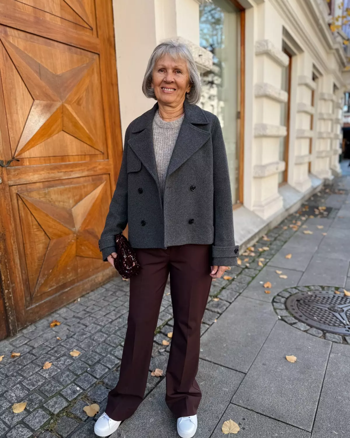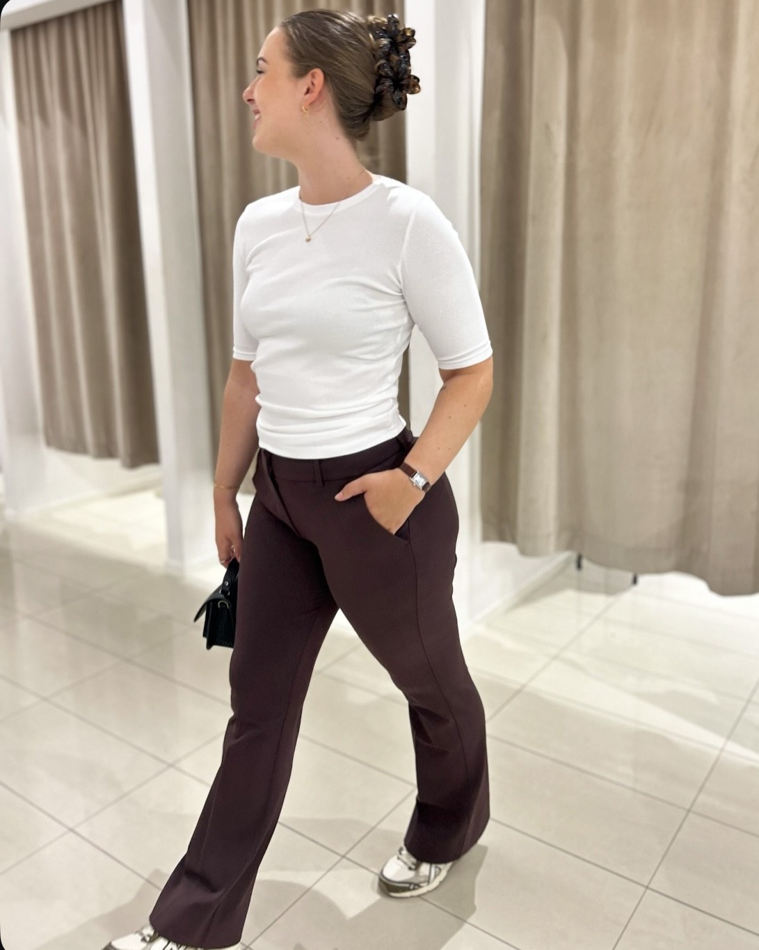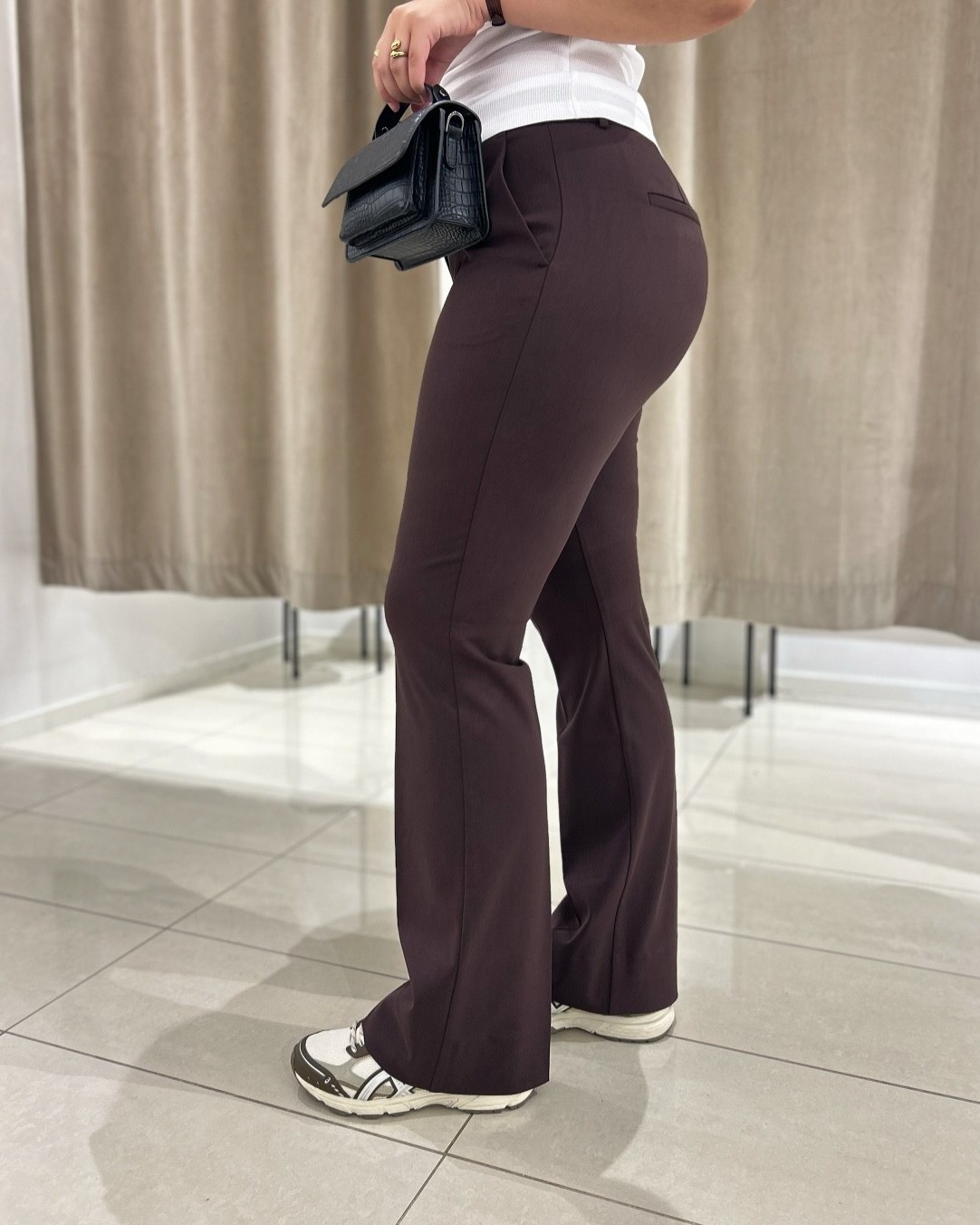 Denne er lang i bena! Modellen er 174cm og har på seg str. 29