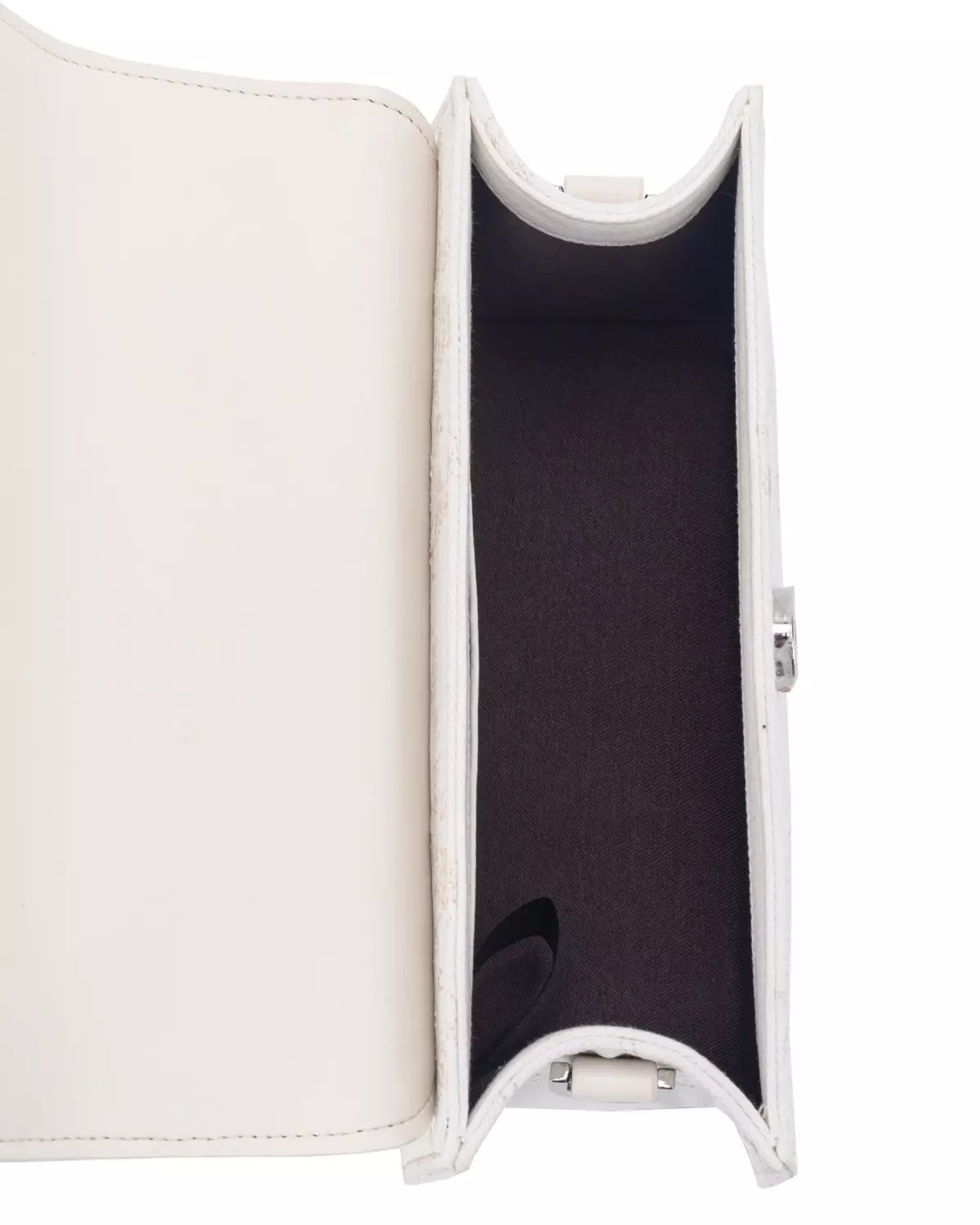Vesken har magnetisk lukking og inneholder ett rom med en innvendig glidelåslomme. Vesken har et kort håndtak og en justerbar skulderreim.