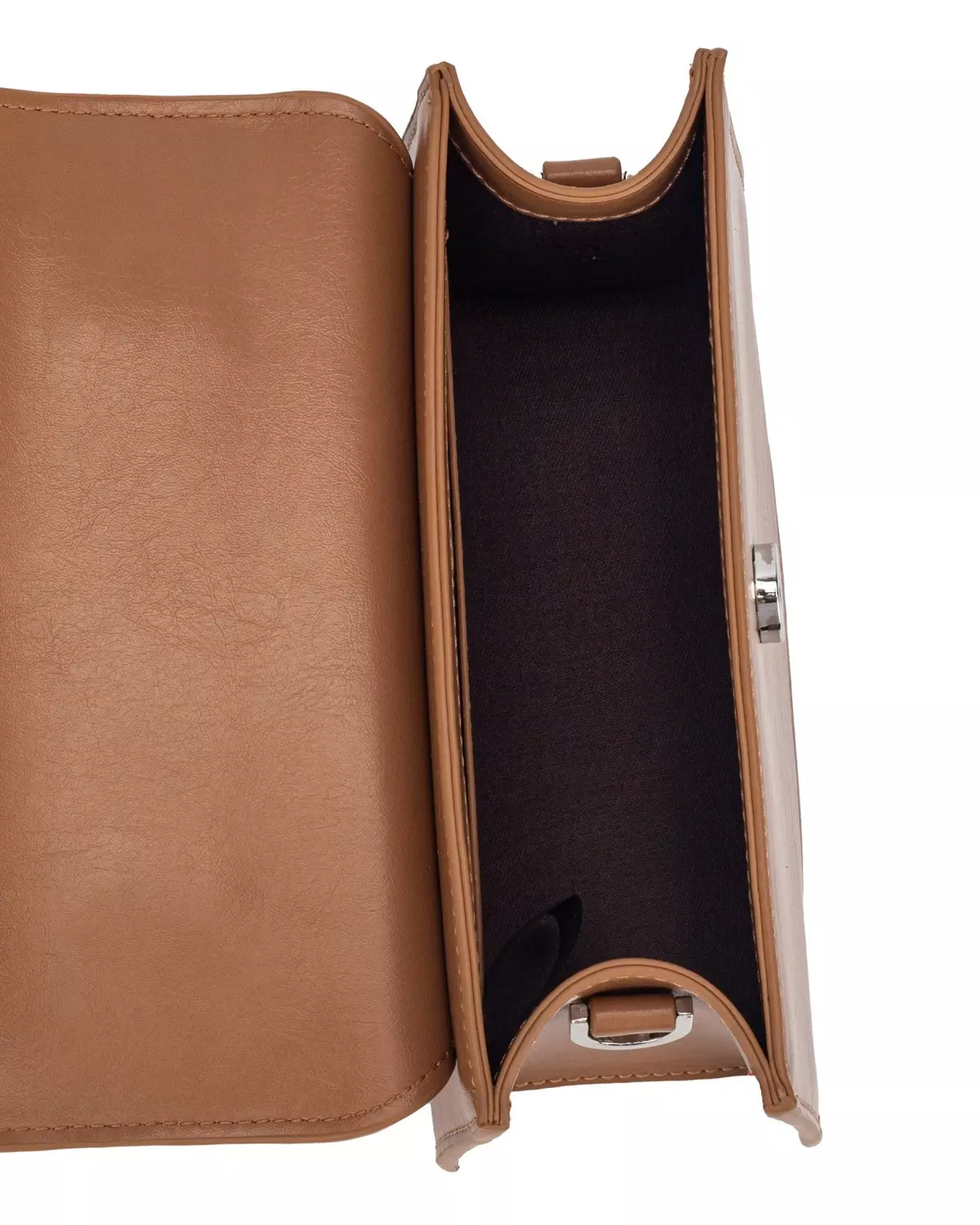 Vesken har magnetisk lukking og inneholder ett rom med en innvendig glidelåslomme. Vesken har et kort håndtak og en justerbar skulderreim.