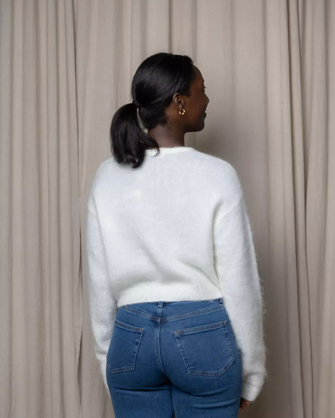 Laget av: 34% Mohair (sertifisert), 34% ull (sertifisert),28% polyamid og 4% elastan.