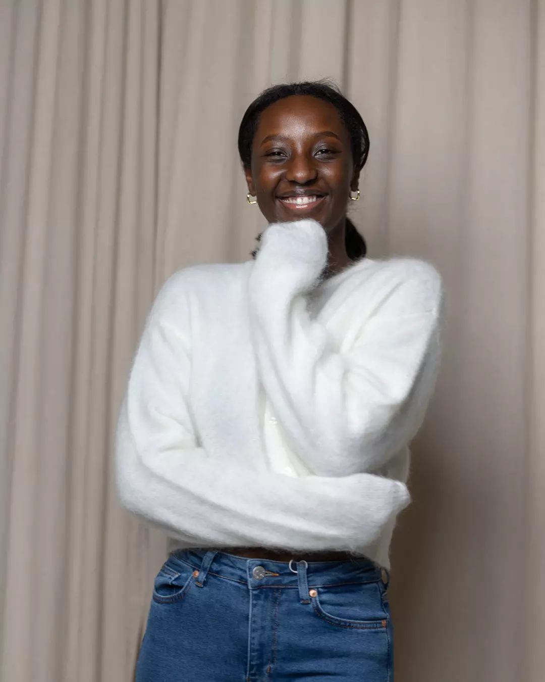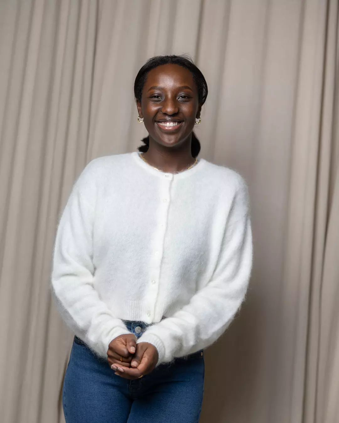 Cardigan fra Gestuz i superfin lys farge – med små søte knapper!