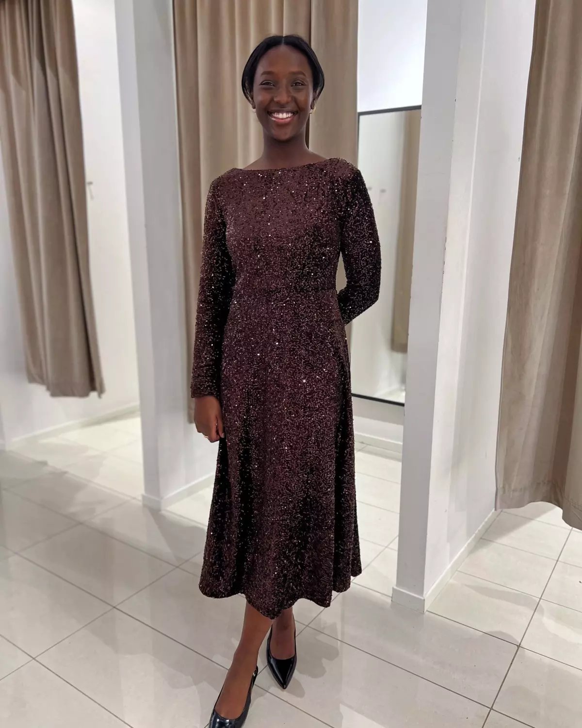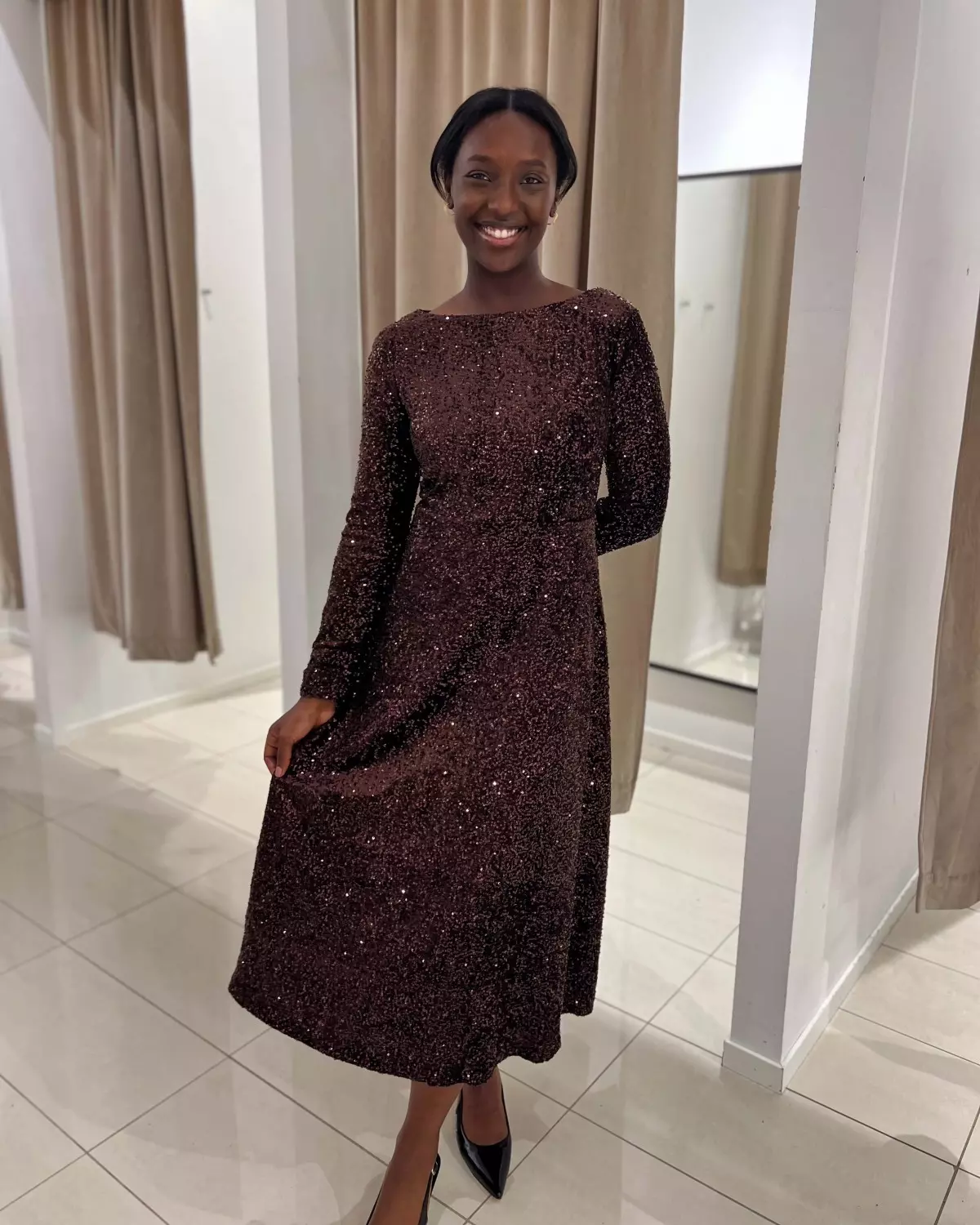 Nydelig myk paljettkjole fra From Paris with Love. Lekker hals og fint smalt liv.