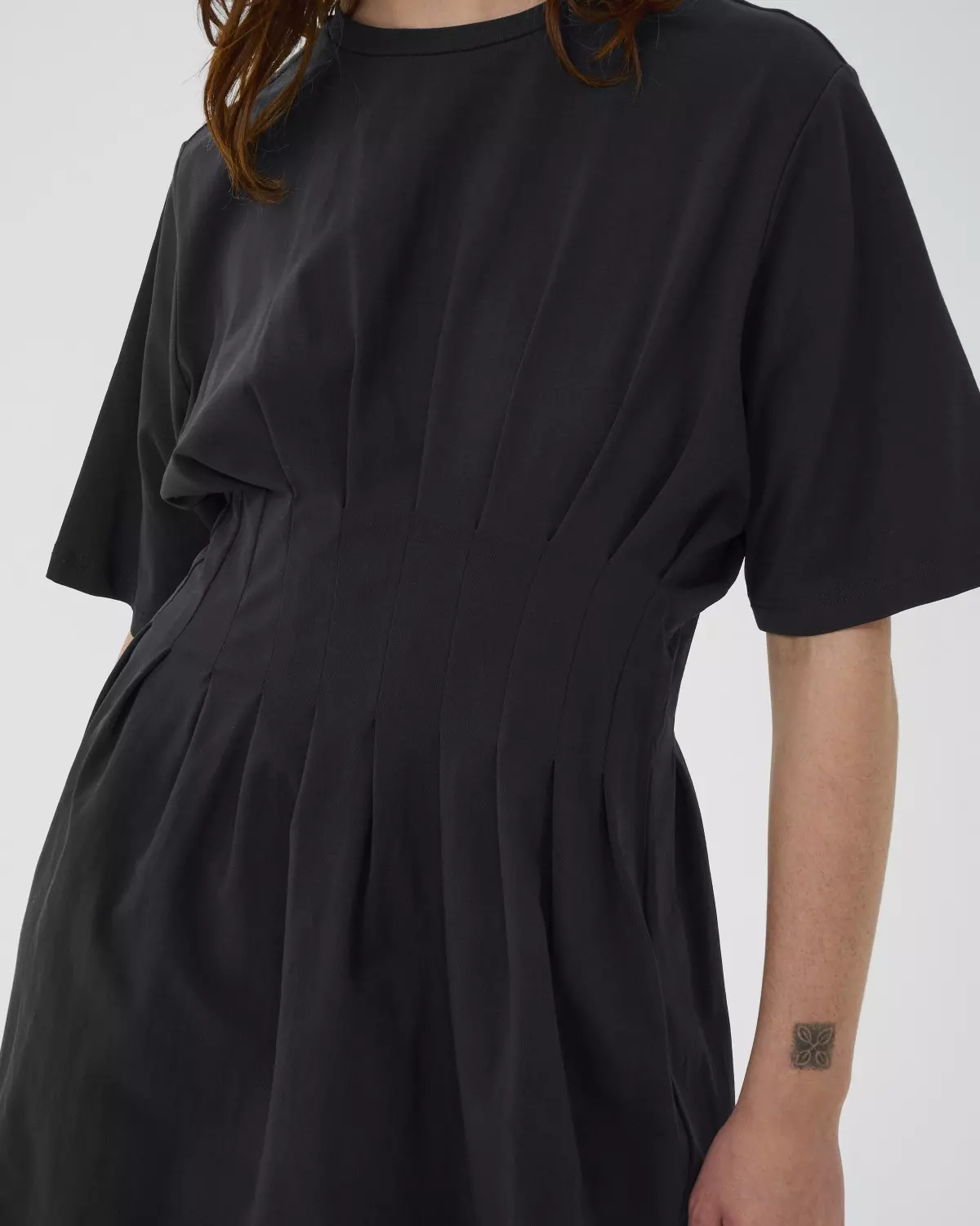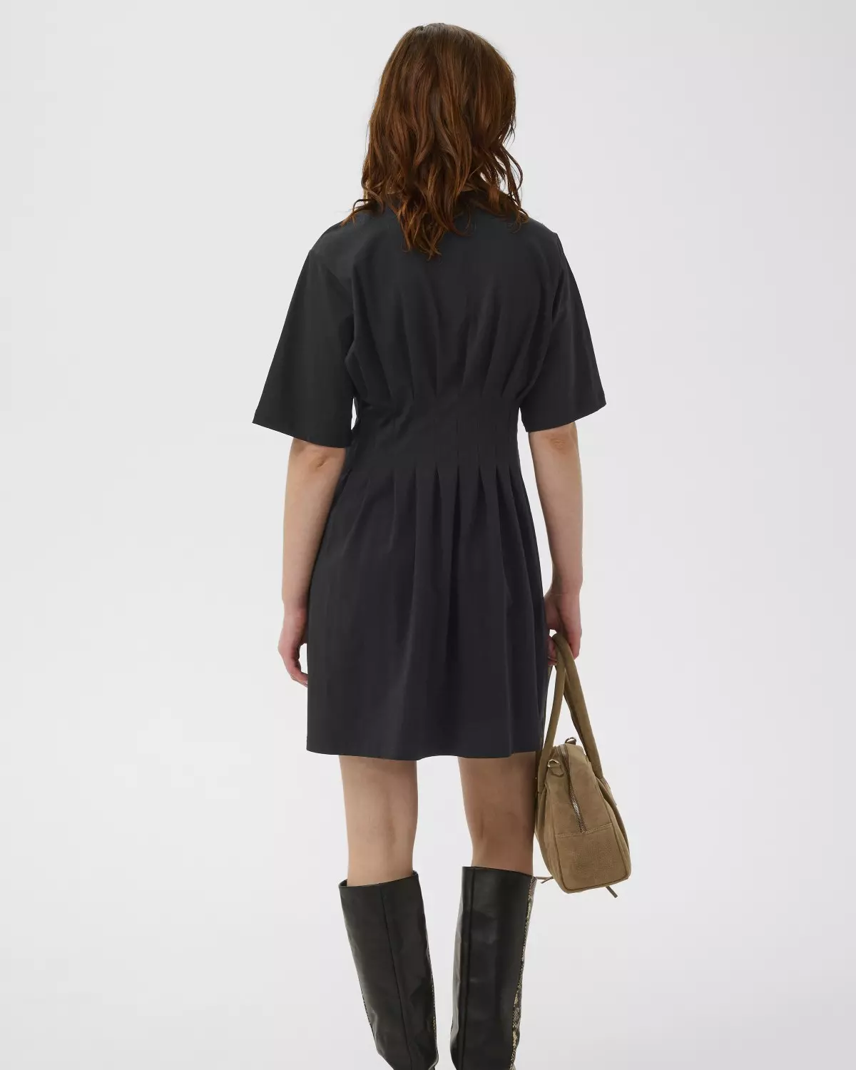 Kjolen har korte ermer og en ren, minimalistisk overdel som gjør den enkel å style – perfekt både til jobb, middag og mer formelle anledninger. Bruk den med boots og blazer til hverdags, eller med hæler og smykker for en mer pyntet look.