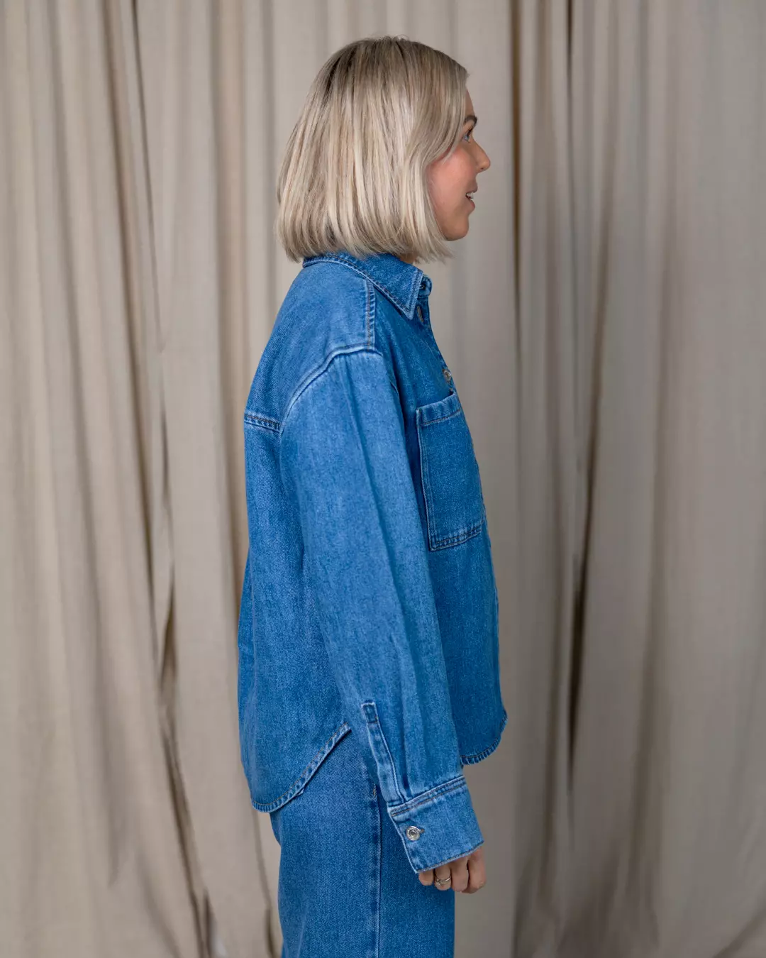 Irvina er en lett og luftig denimskjorte, perfekt plagg å hive på seg når våren kommer. Den kan styles sammen med en av våre favoritter, Irvine Denim Jeans i samme farge.
