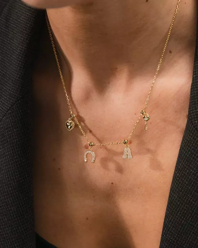Alle charms fra Who Is She kommer i sølv- eller gullbelagt messing, og har en liten gummidel i festet som tres direkte inn på kjedet. Vi anbefaler å unngå vann, parfyme og fukt for å bevare både belegg og feste best mulig.