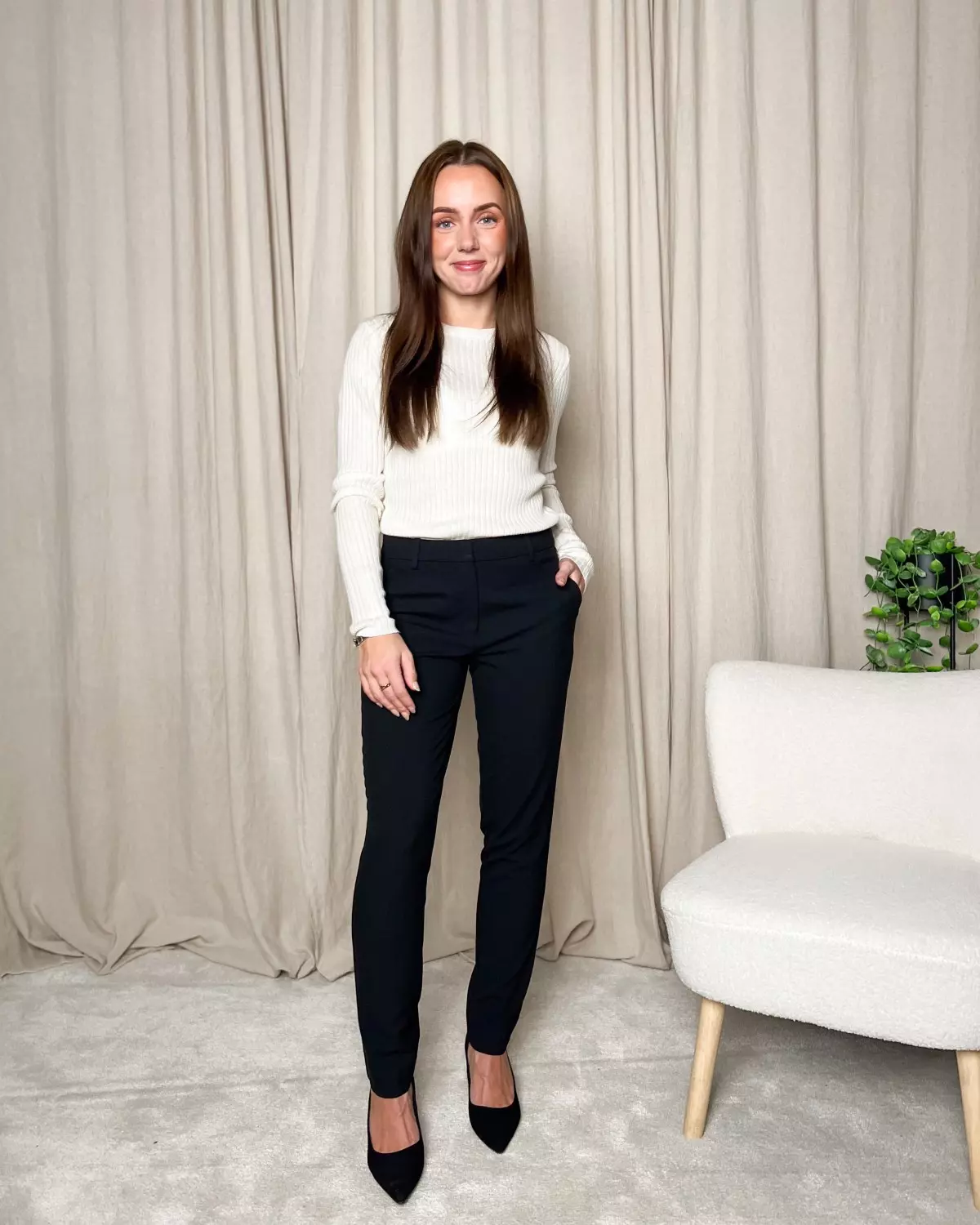 Modellen er 157cm høy og har på str 25. Normal i størrelsen. Den vil treffe litt høyere på anklene på noen som har lengre ben og passer også fint til dem også!