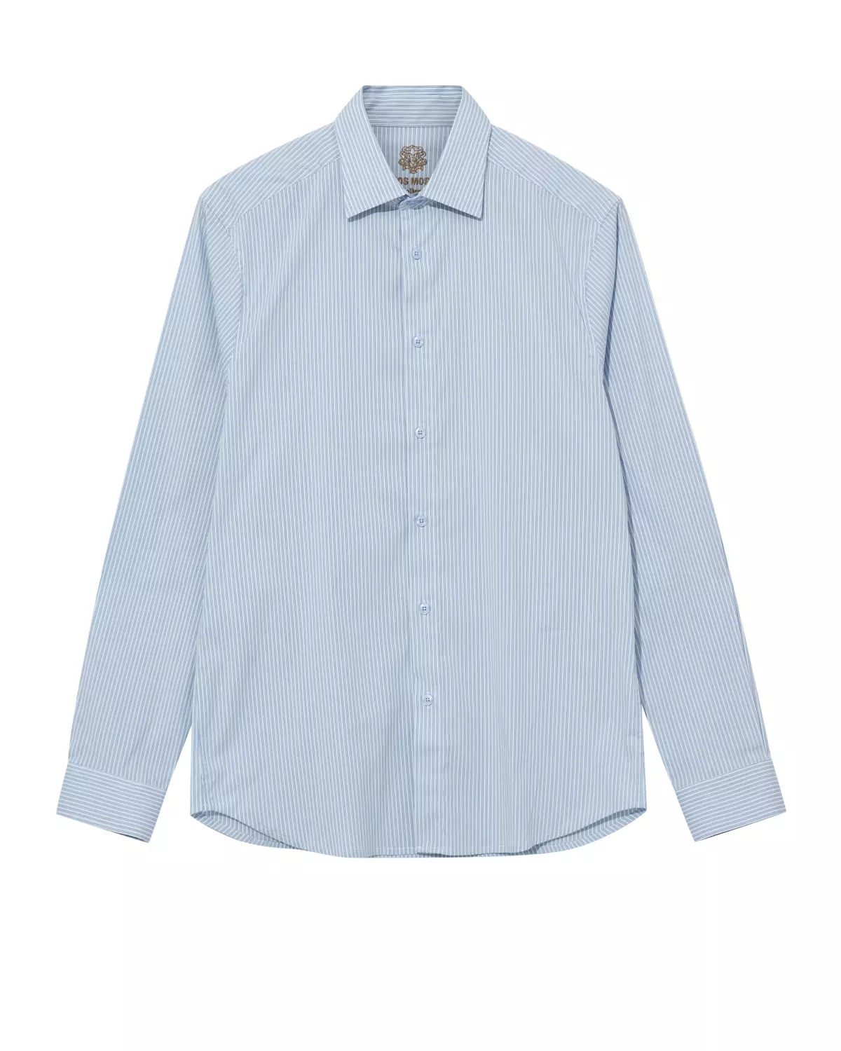 Denne klassiske skjorten kombinerer tidløs stil med komfort og allsidighet. Modellen har en normal passform som sitter behagelig på kroppen uten å føles for stram, noe som gjør den like godt egnet til både jobb og fritid.