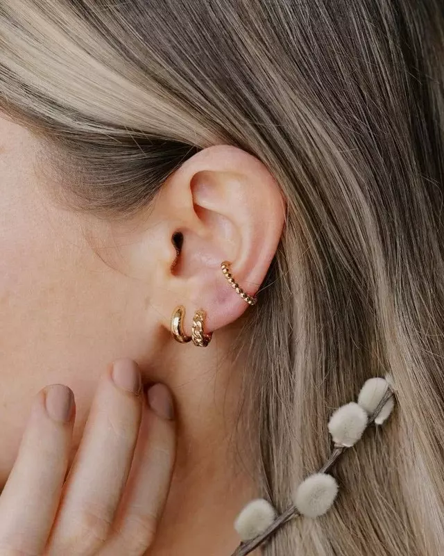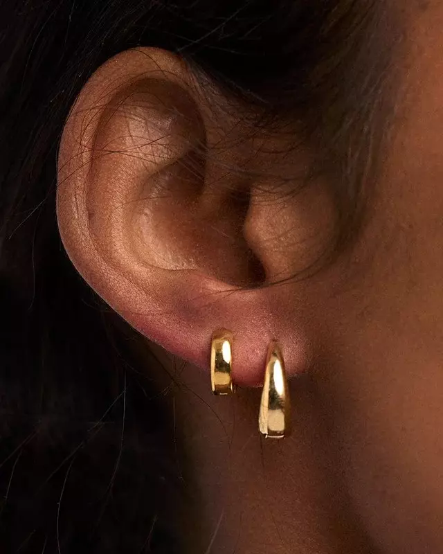 De har små, tykke gullringe med en enkel klikklås.