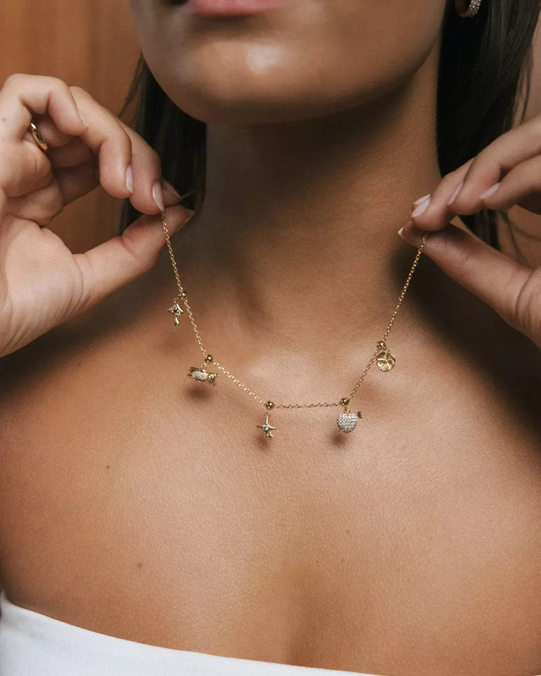 Alle charms fra Who Is She kommer i sølv- eller gullbelagt messing, og har en liten gummidel i festet som tres direkte inn på kjedet. Vi anbefaler å unngå vann, parfyme og fukt for å bevare både belegg og feste best mulig.