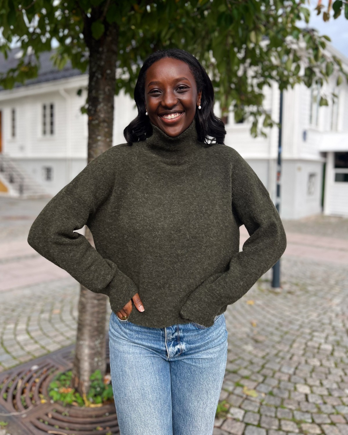 Sykt fin genser med en mørk og dyp grønnfarge. Denne genseren er super til kaldere tider, den er litt tynnere men fremdeles god og varm. Fargen er så fin, en skikelig høst-farge!