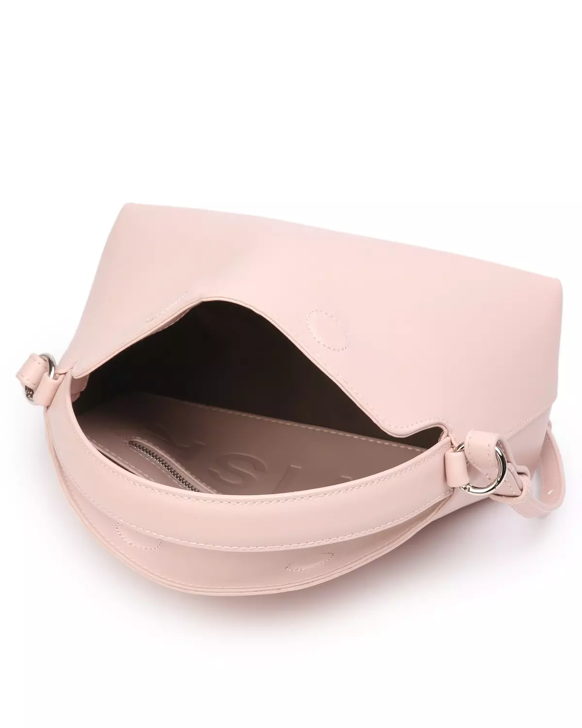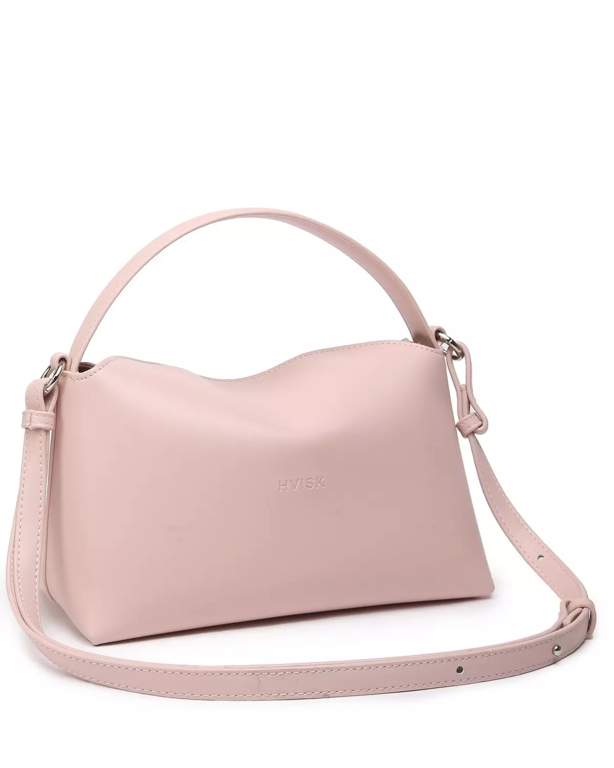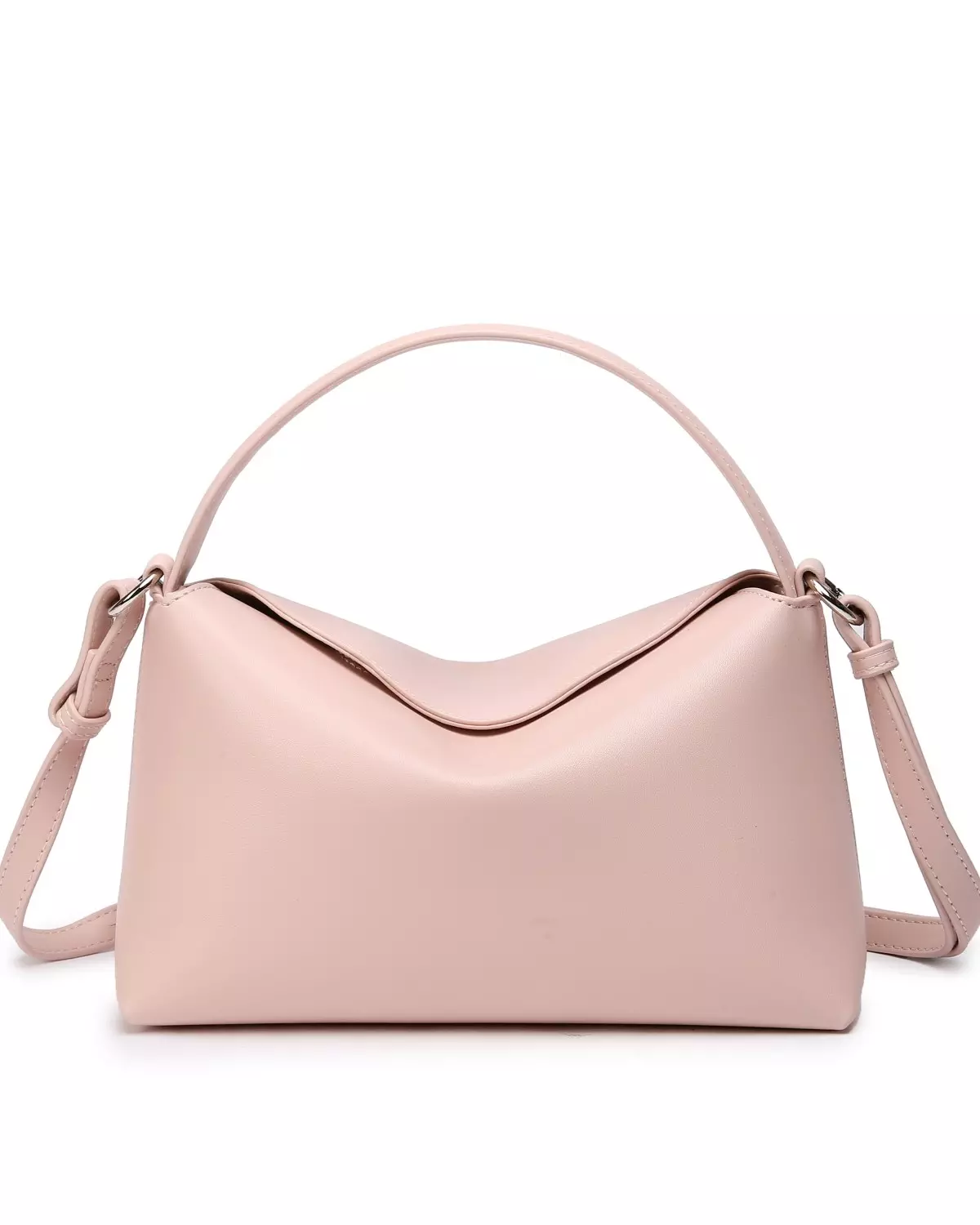 Håndveske med kort håndtak og en lengre, avtagbar, justerbar stropp. Vesken har ett stort rom og en liten glidelåslomme inni. En kort klaff med to magnetiske knapper lukker vesken.