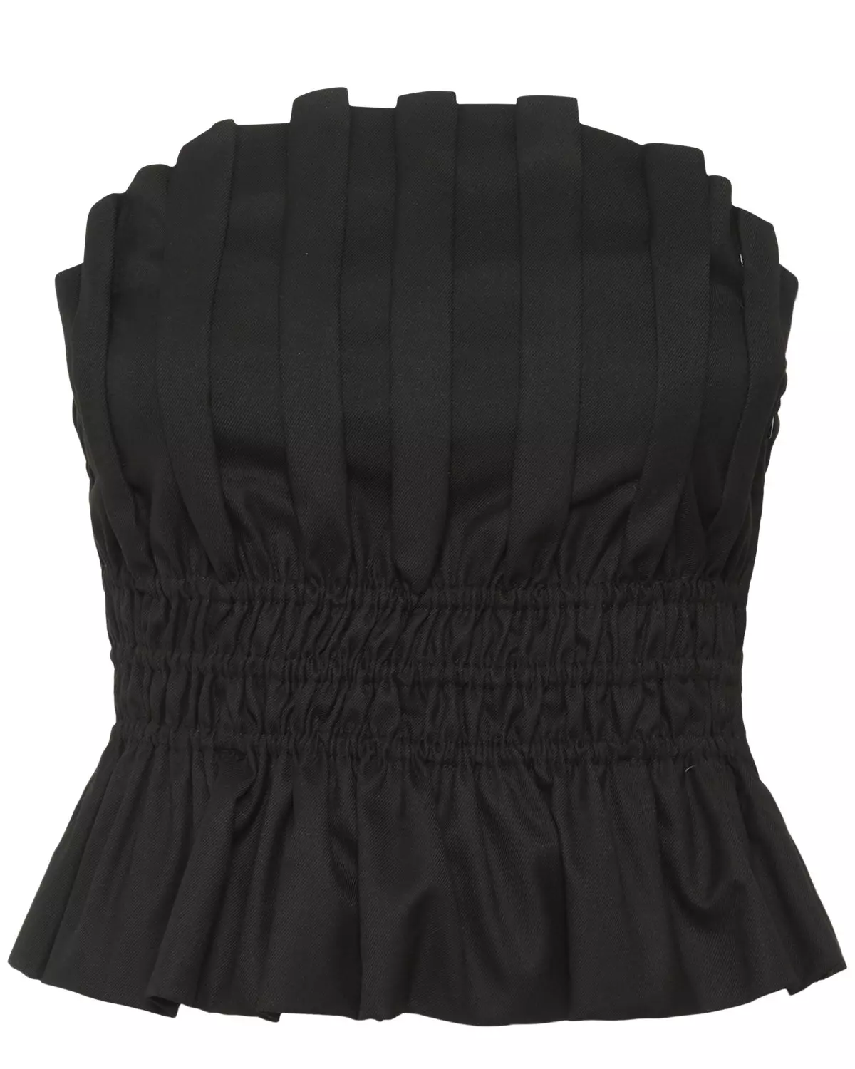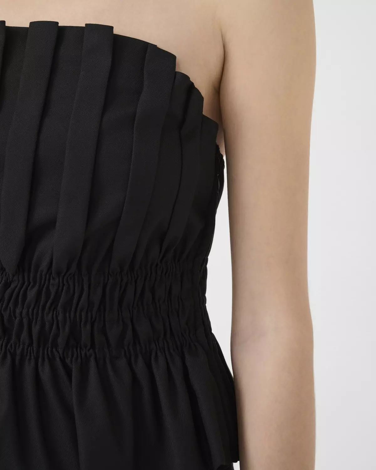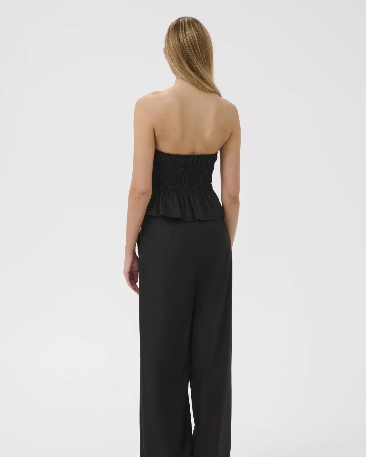 Tøff topp fra Gestuz. Stroppløs med innsvinget strikk i livet. Kul som til dressbukse eller til jeans. Glidelås i siden.