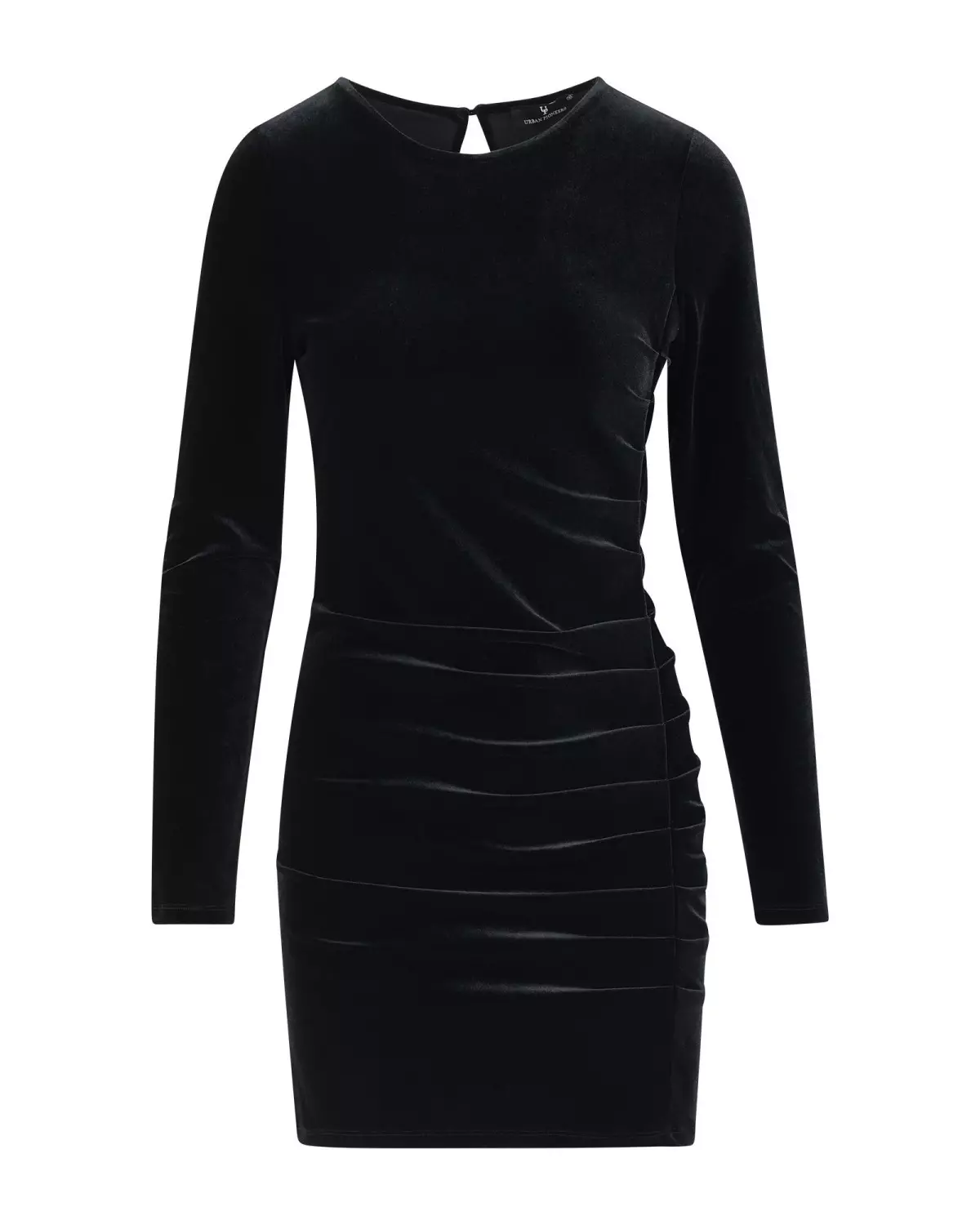Nydelig kort velour kjole i sort fra Urban Pioneers! Sååå fin! Den har rysjer i siden, som gjør at den er super-flatterende på. En lekker kjole med lange ermer for de som ønsker det!