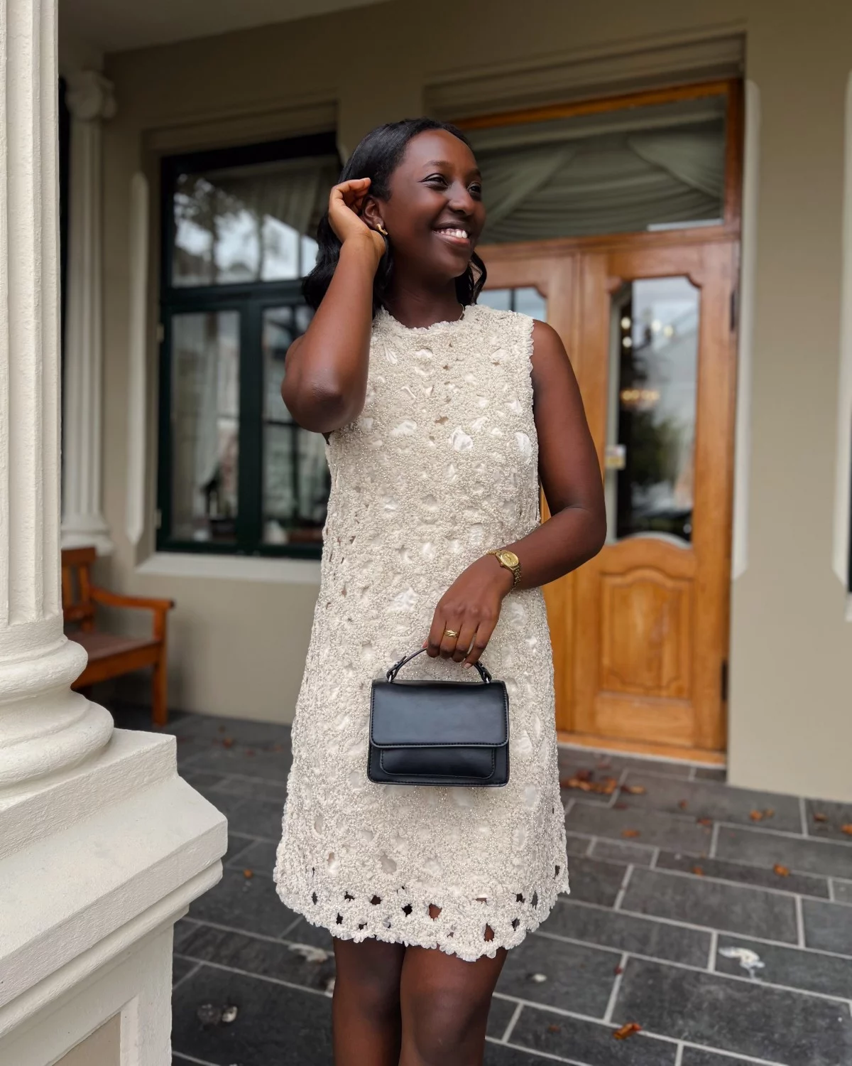 En veske som går til alt – med kort håndtak og festbar justerbar crossbody-stropp. Vesken har ett hovedrom sammen med en frontlomme.