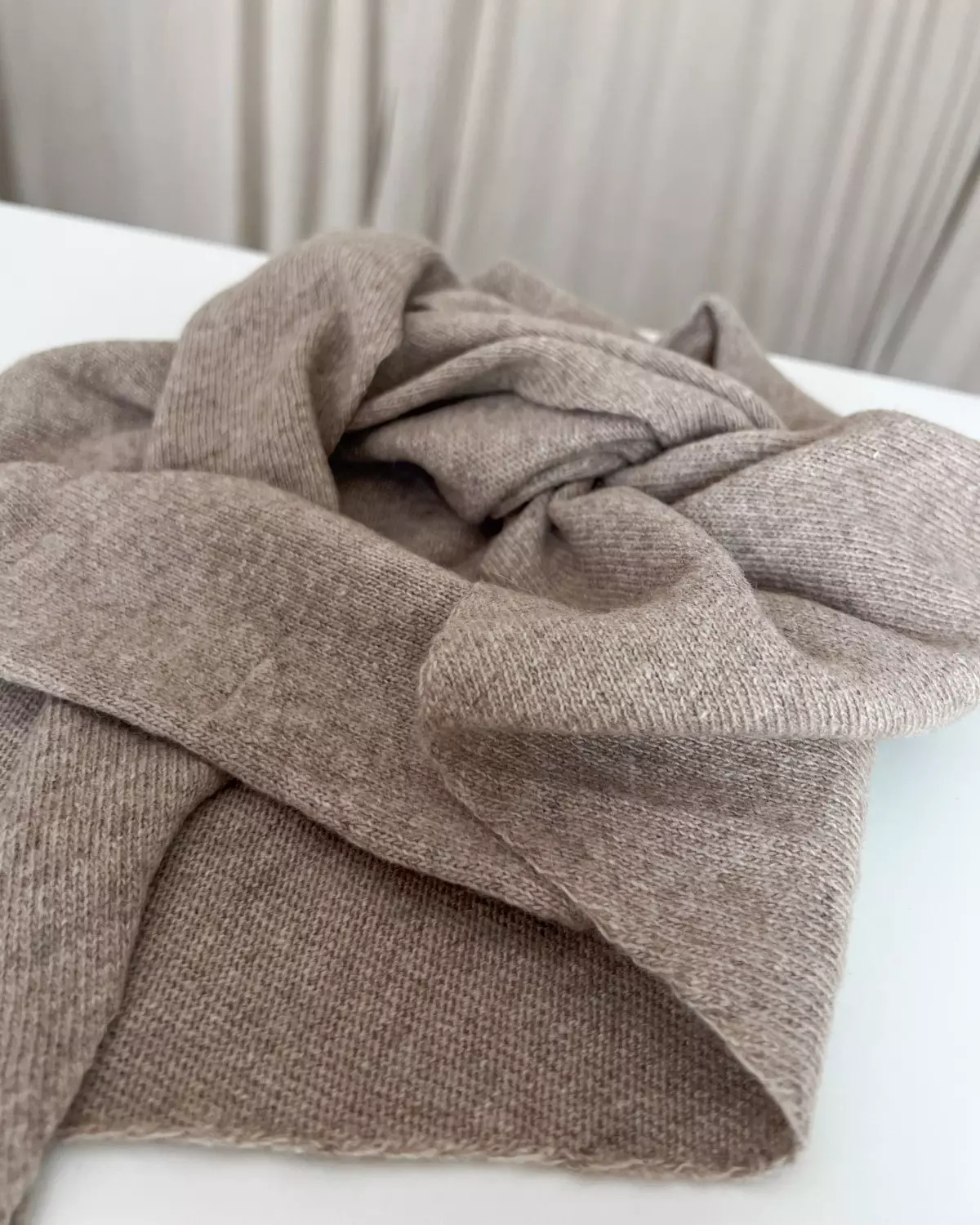 Deilige cashmere skjerf i sand perfekt for høstens kjølige temperaturer.