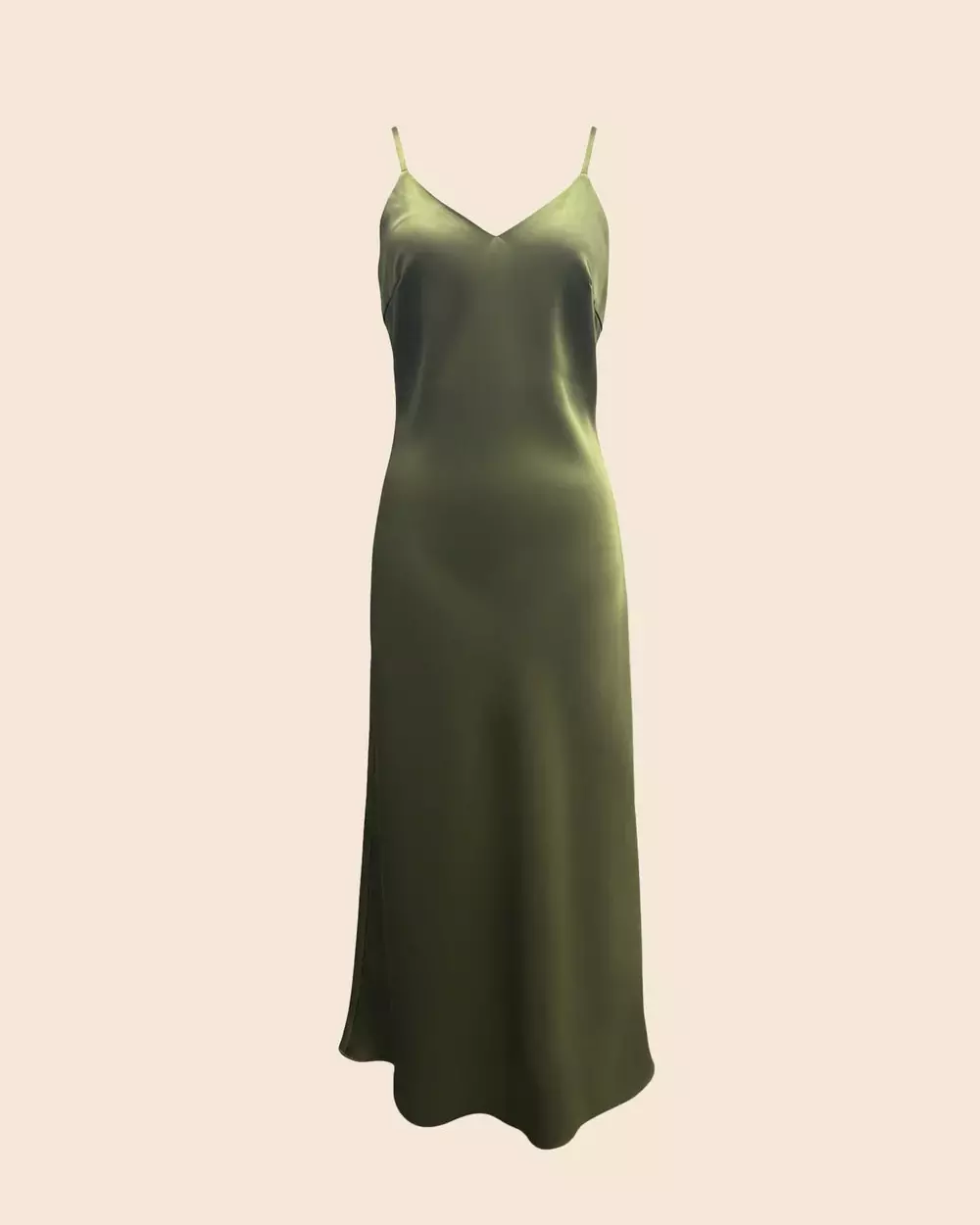 De tynne, justerbare spagettistroppene og det subtile v-utringningen gjør kjolen tidløs og anvendelig – perfekt til bryllup, sommerfester eller som en del av en kapselgarderobe.