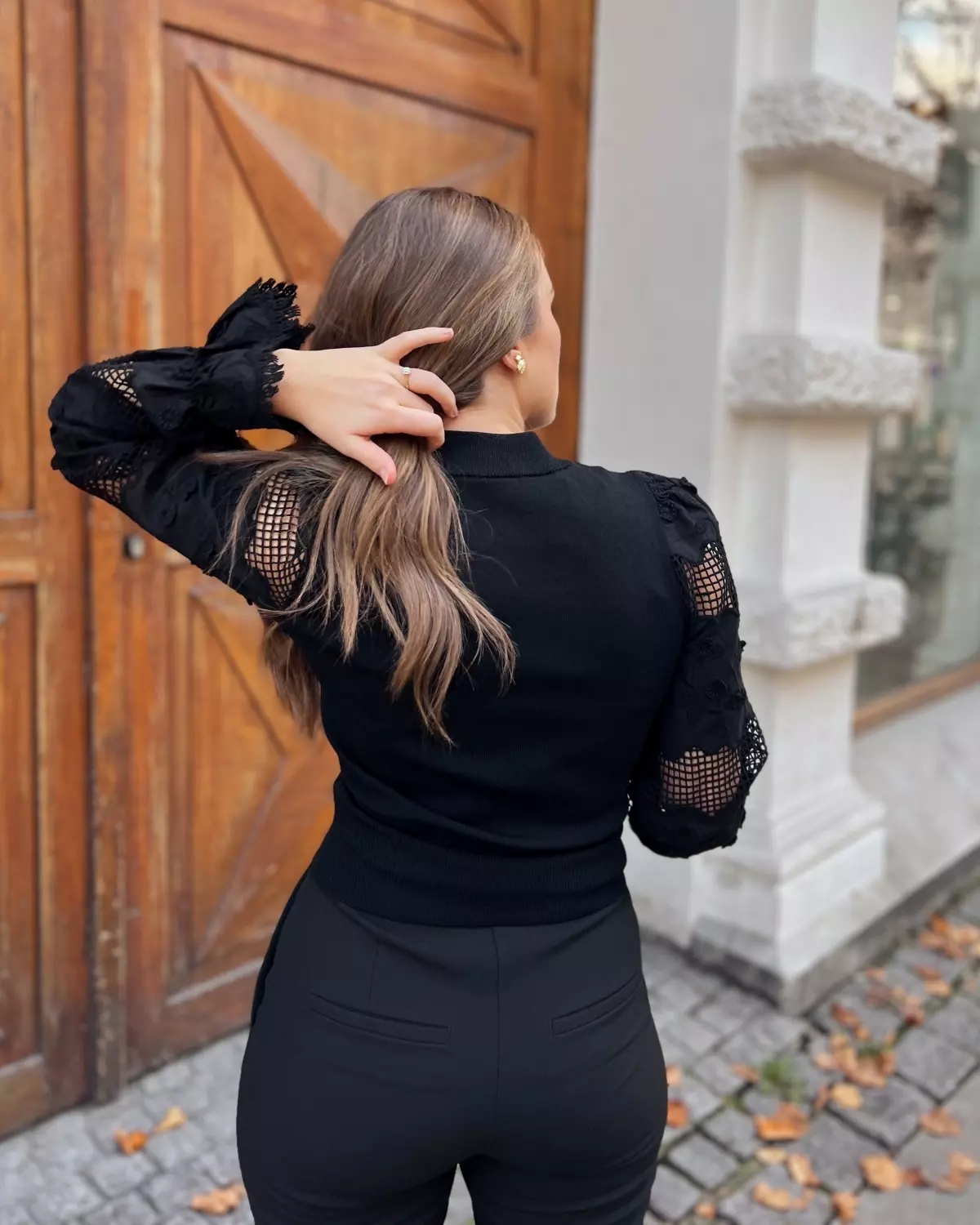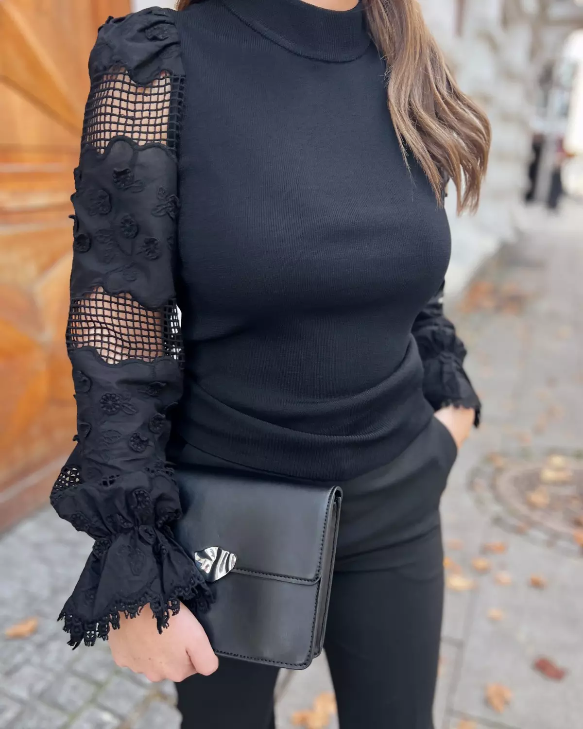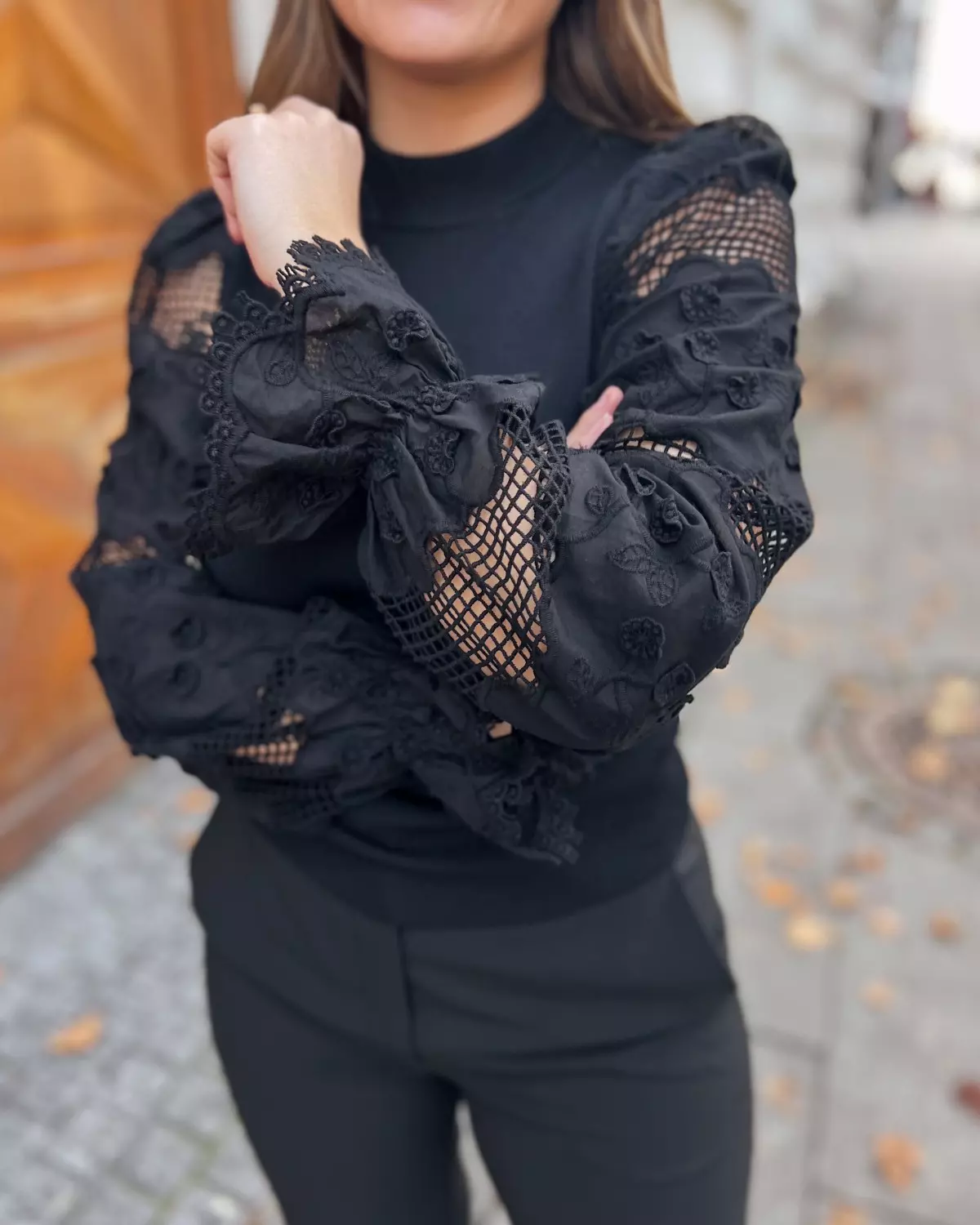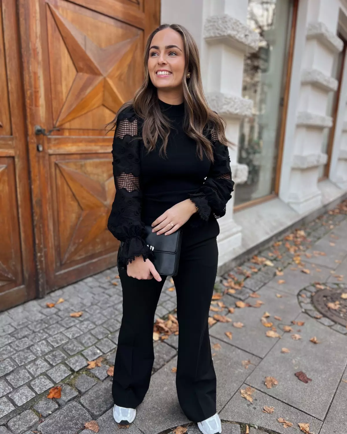 Nydelig topp fra Yas! Broderi på armene og ribbet midtdel som gir en lekker passform. Perfekt til både dressbukser og jeans utover høsten og vinteren!