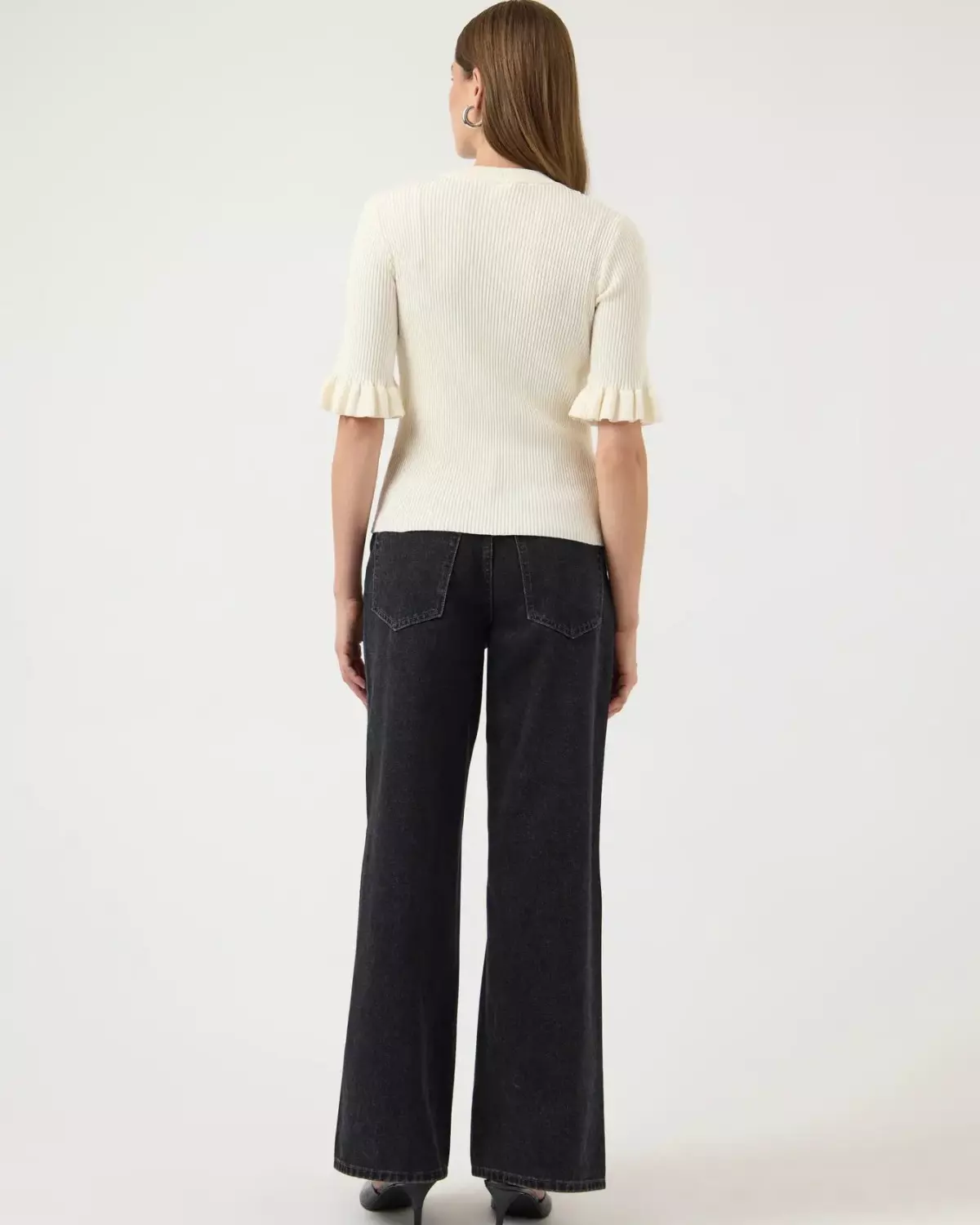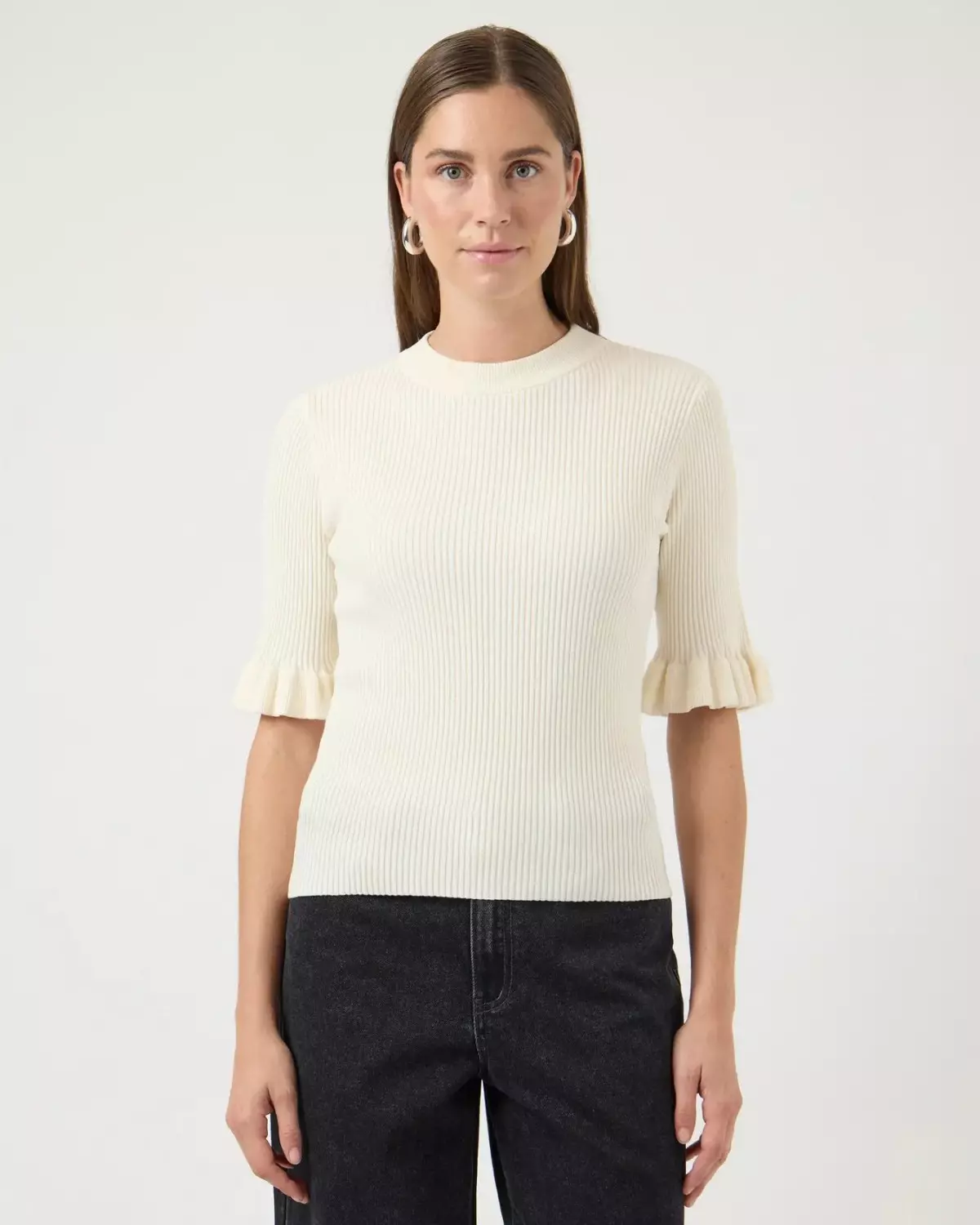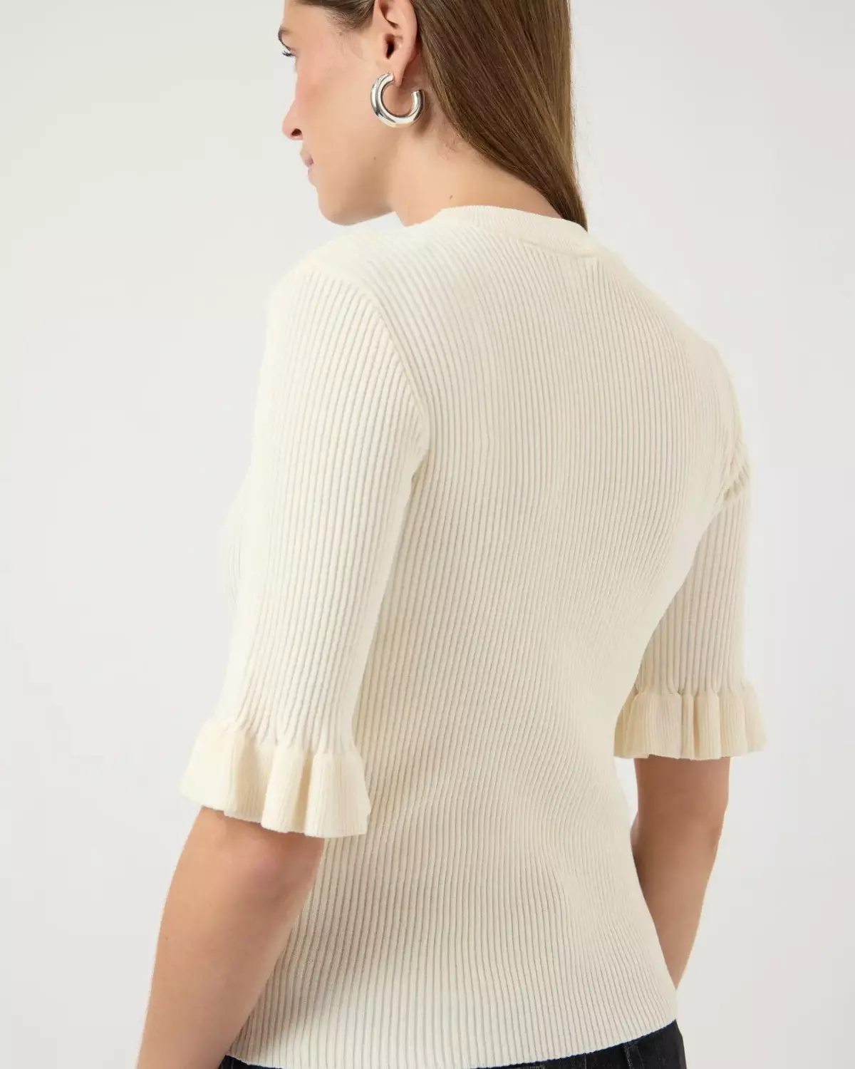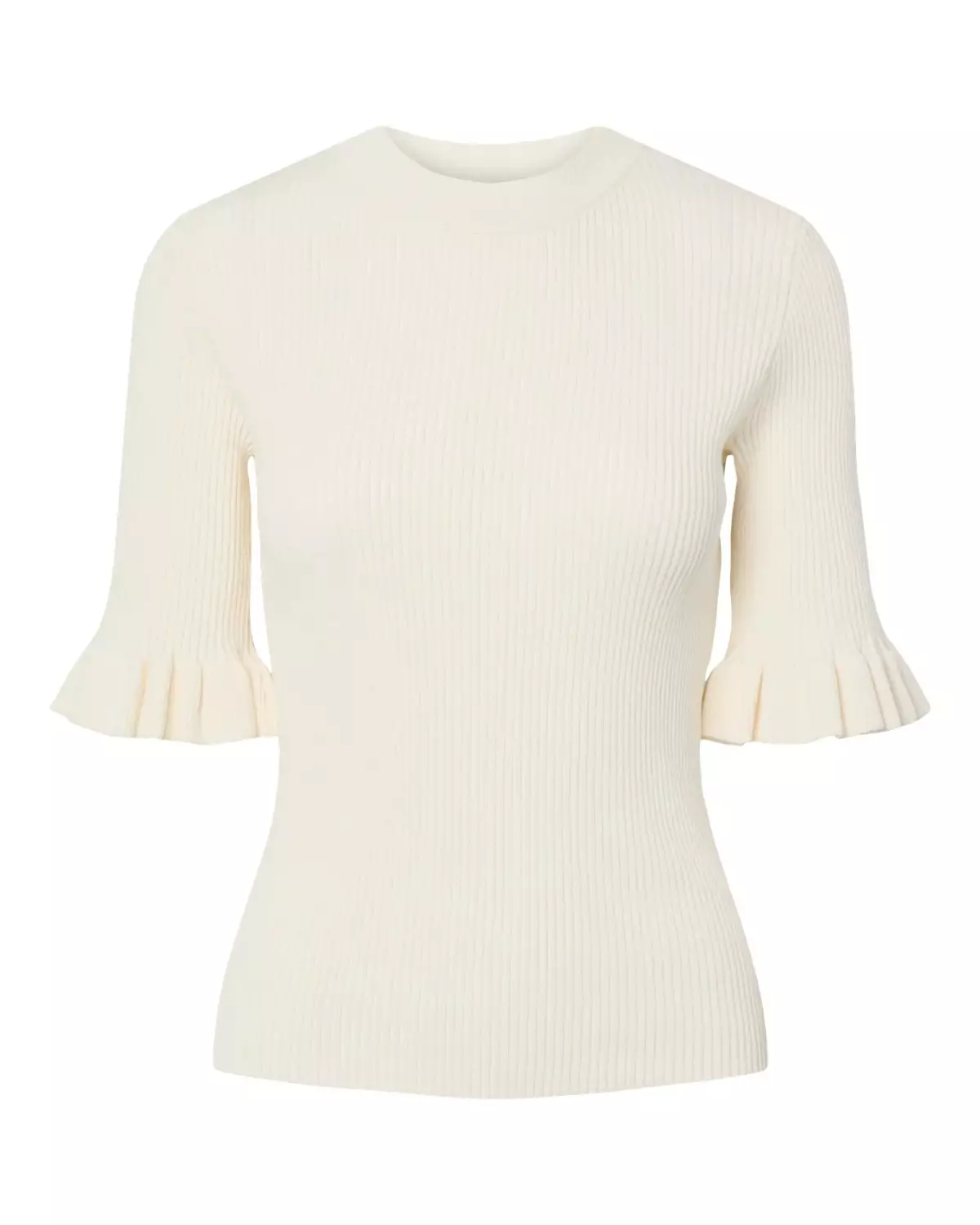 Elegant ribbestrikket topp fra YAS i en tidløs kremfarge. Toppen har en feminin passform med fine volangdetaljer på ermene som gir det lille ekstra. Perfekt både til hverdags og mer pyntede anledninger – enkel å style med jeans, skjørt eller dressbukser. En klassiker du kan bruke sesong etter sesong.